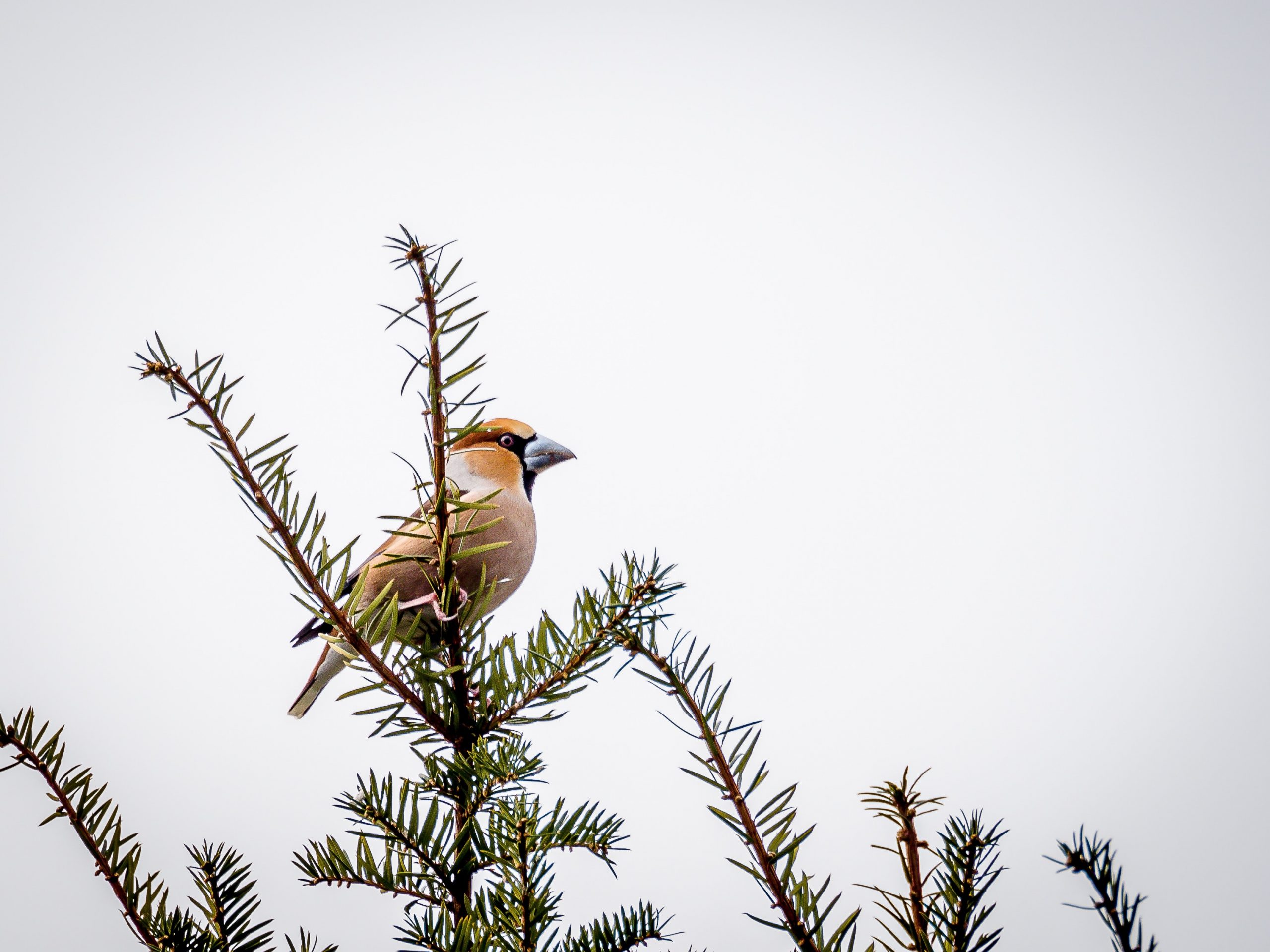Optisch ist der Kernbeißer eine Schönheit. Sein Gefieder schimmert in warmen Brauntönen, dazu kontrastieren schwarze, weiße und graublaue Partien an Flügeln und Kopf. Besonders auffällig ist das Auge mit seiner scharfen, fast wachsamen Ausstrahlung. Trotz seiner kräftigen Erscheinung ist der Kernbeißer ein scheuer Geselle, der selten lange in der Nähe des Menschen verweilt. Oft entdeckt man ihn nur im Vorbeiflug, wenn er mit schnellen, kräftigen Flügelschlägen von Baum zu Baum zieht.